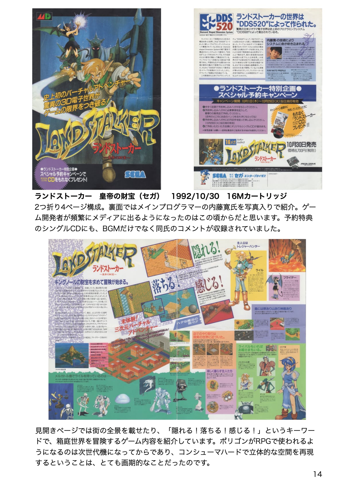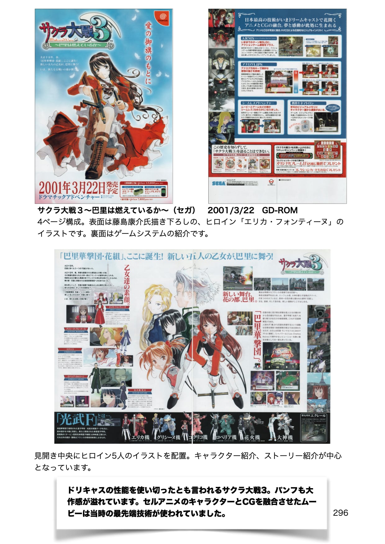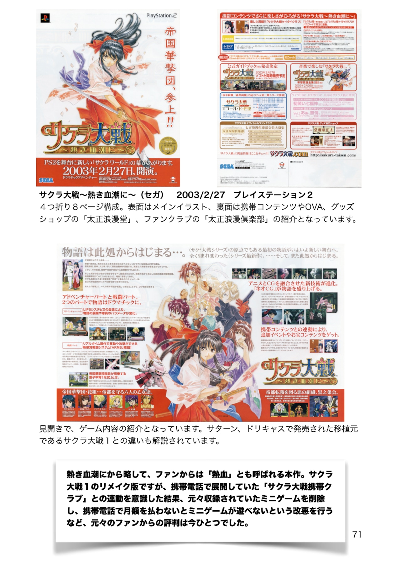 関連のパンフレットを解説、考察した同人誌です。USBメモリにて、メガドライブ、セガサターン、ドリームキャスト、そしてハード撤退後のパンフレットを収めています。全803ページにわたって、セガの歴史を彩った名作たちの魅力を存分に感じることができます。